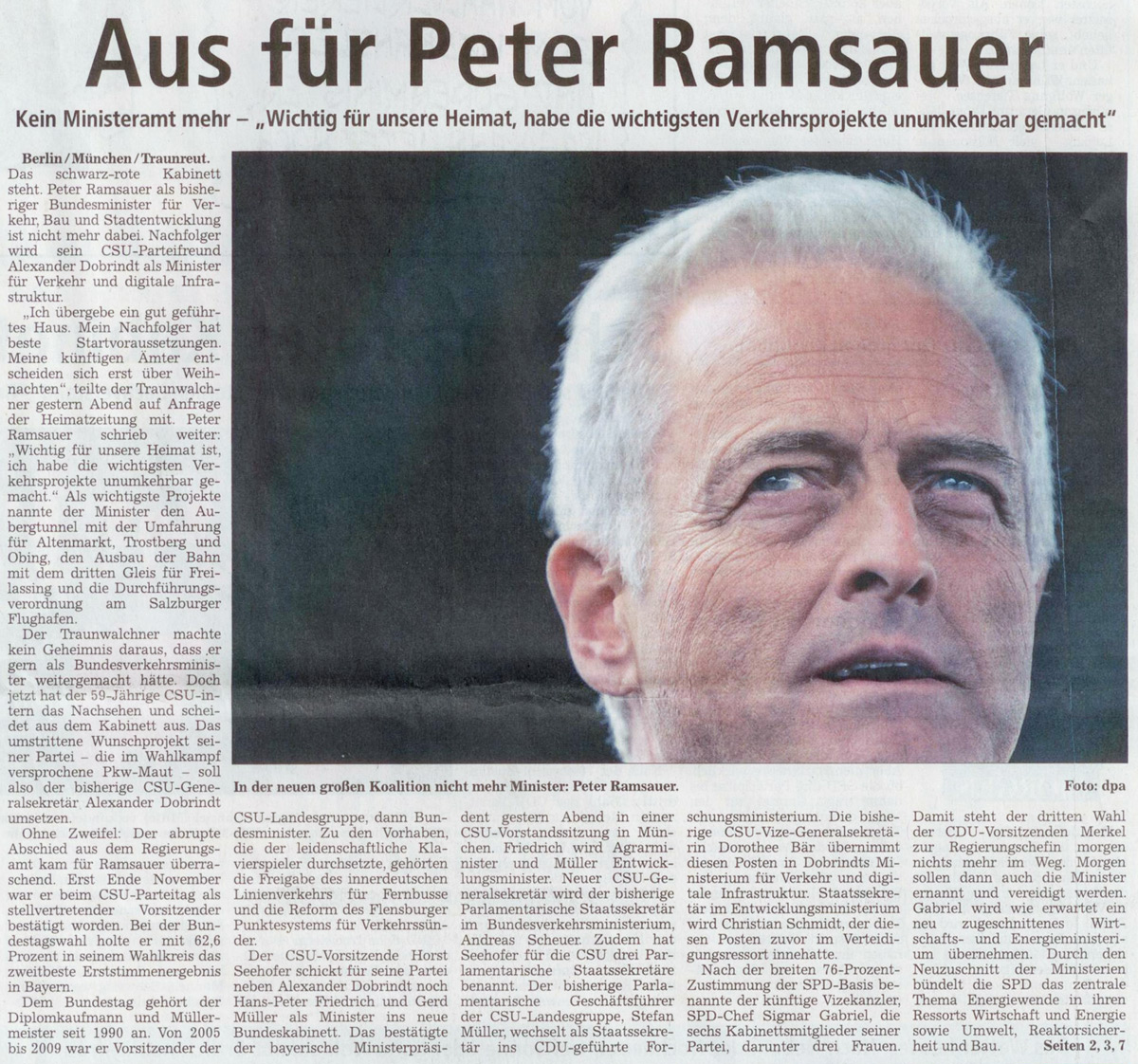 16.12.2013, Artikel im Trostberger Tagblatt "Aus für Peter Ramsauer"