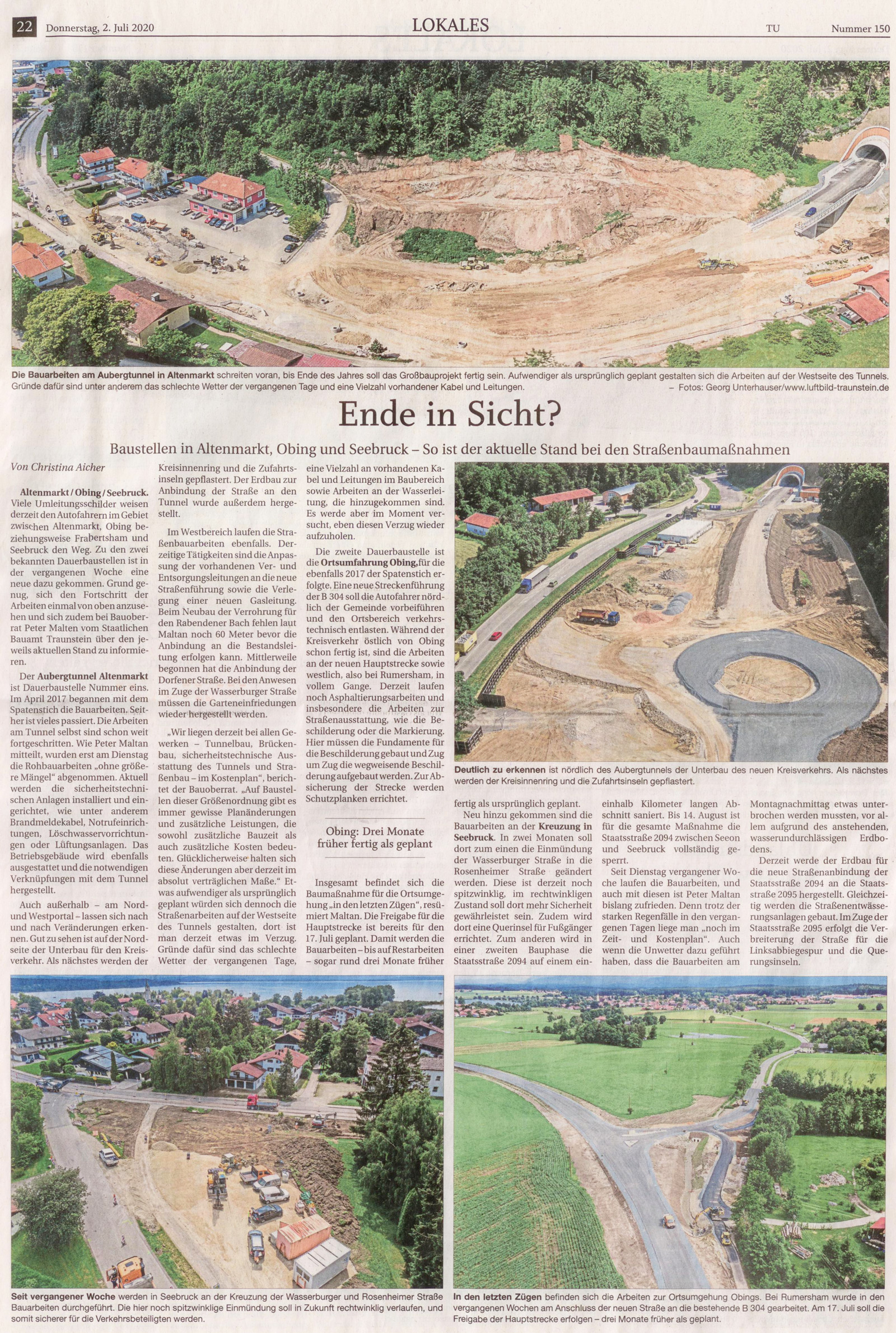 Bericht über den aktuellen Stand der Straßenbaumaßnahmen in Altenmarkt, Seebruck und Obing.
