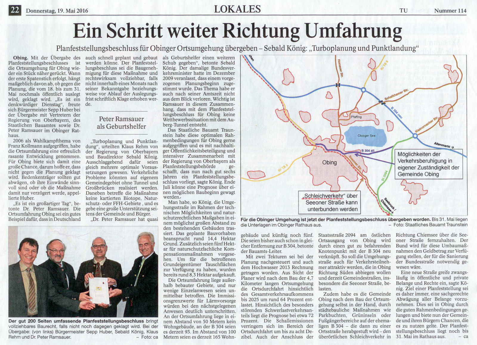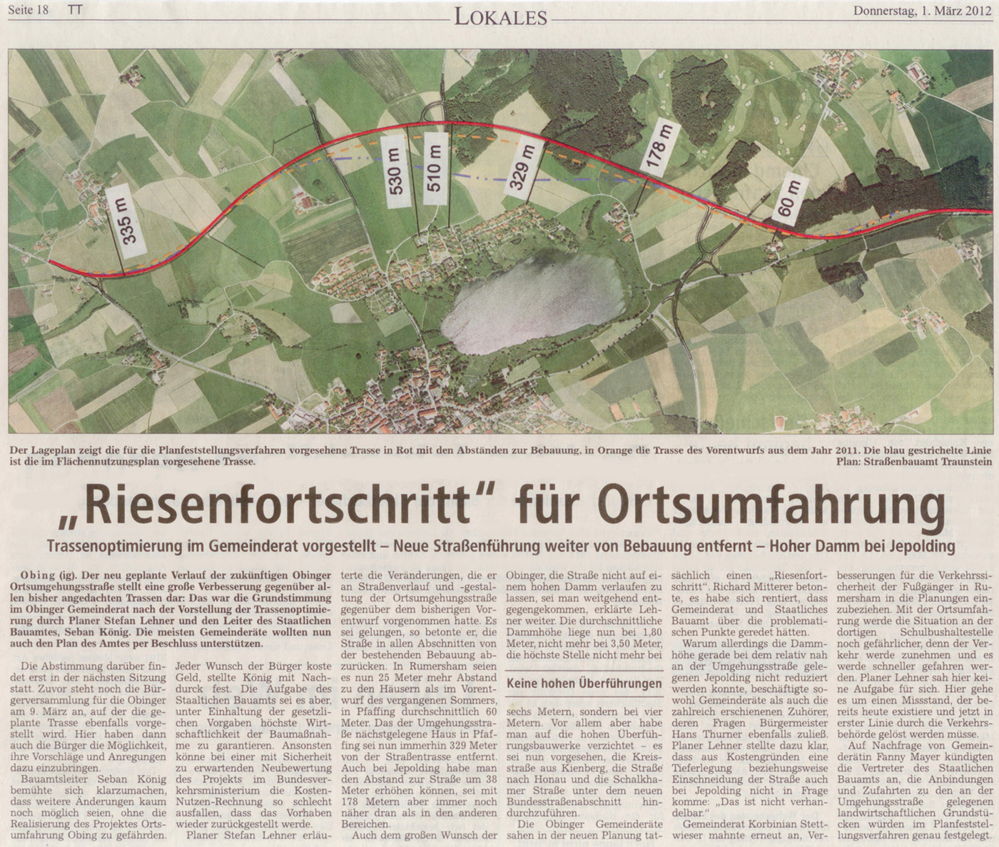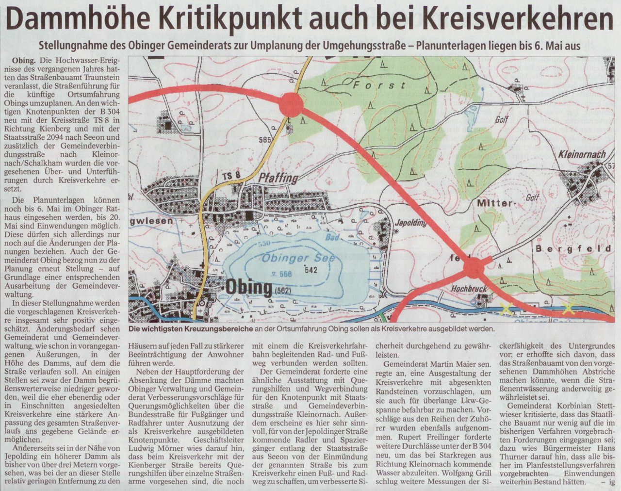 11.05.2013, Artikel im Trostberger Tagblatt "Obinger Umgehung: Änderungswünsche"