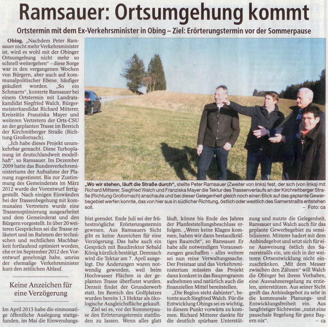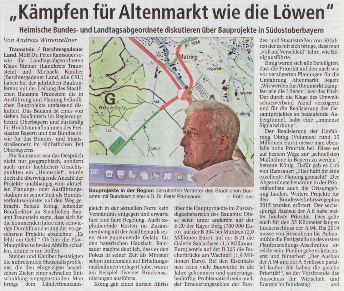 03.03.2014, Artikel im Trostberger Tagblatt "Ramsauer; Ortsumgehung kommt"