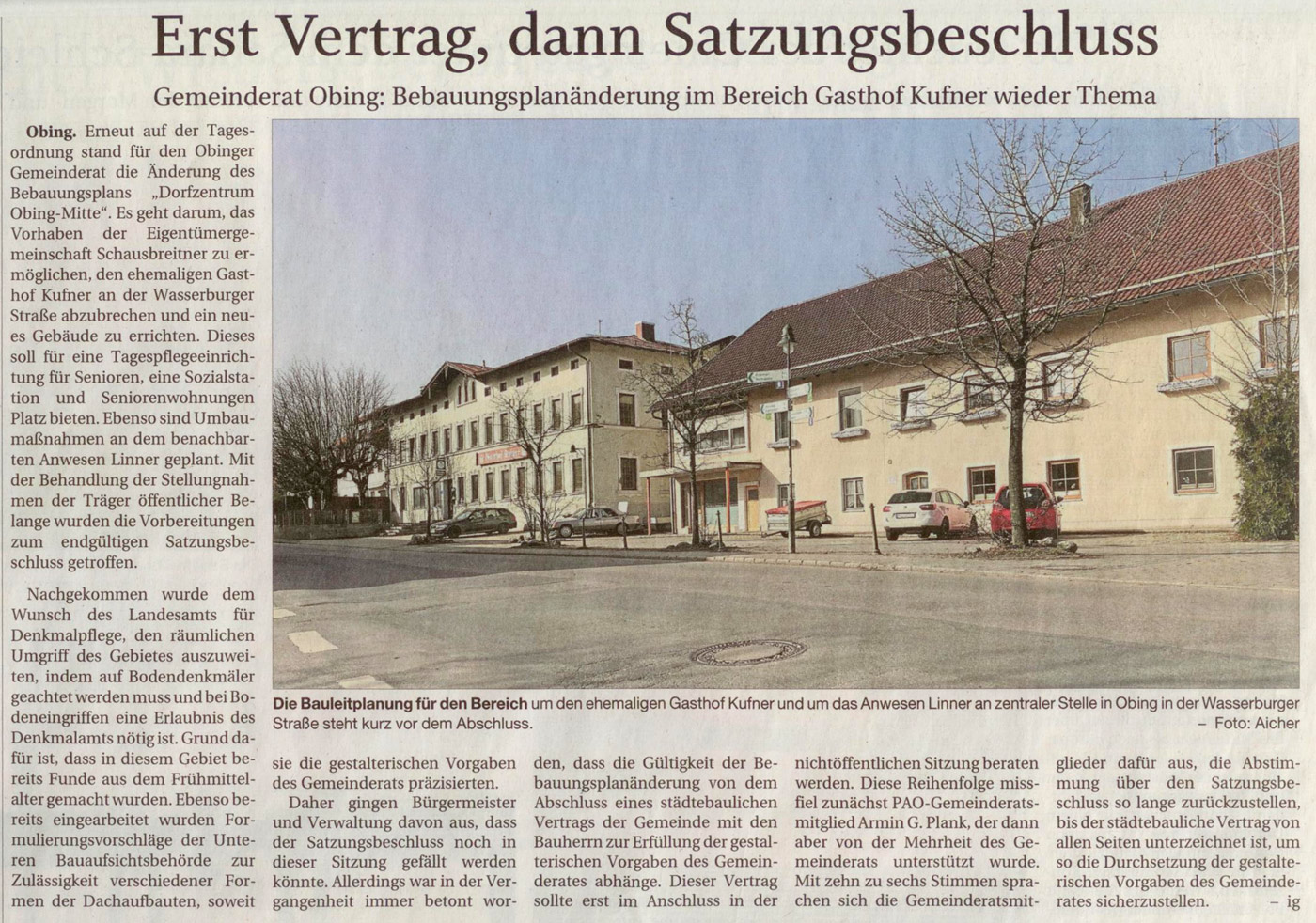 Obing hat das Planungsrecht und weiter den Planungsauftrag erhalten.