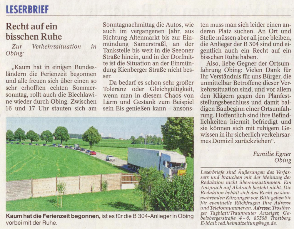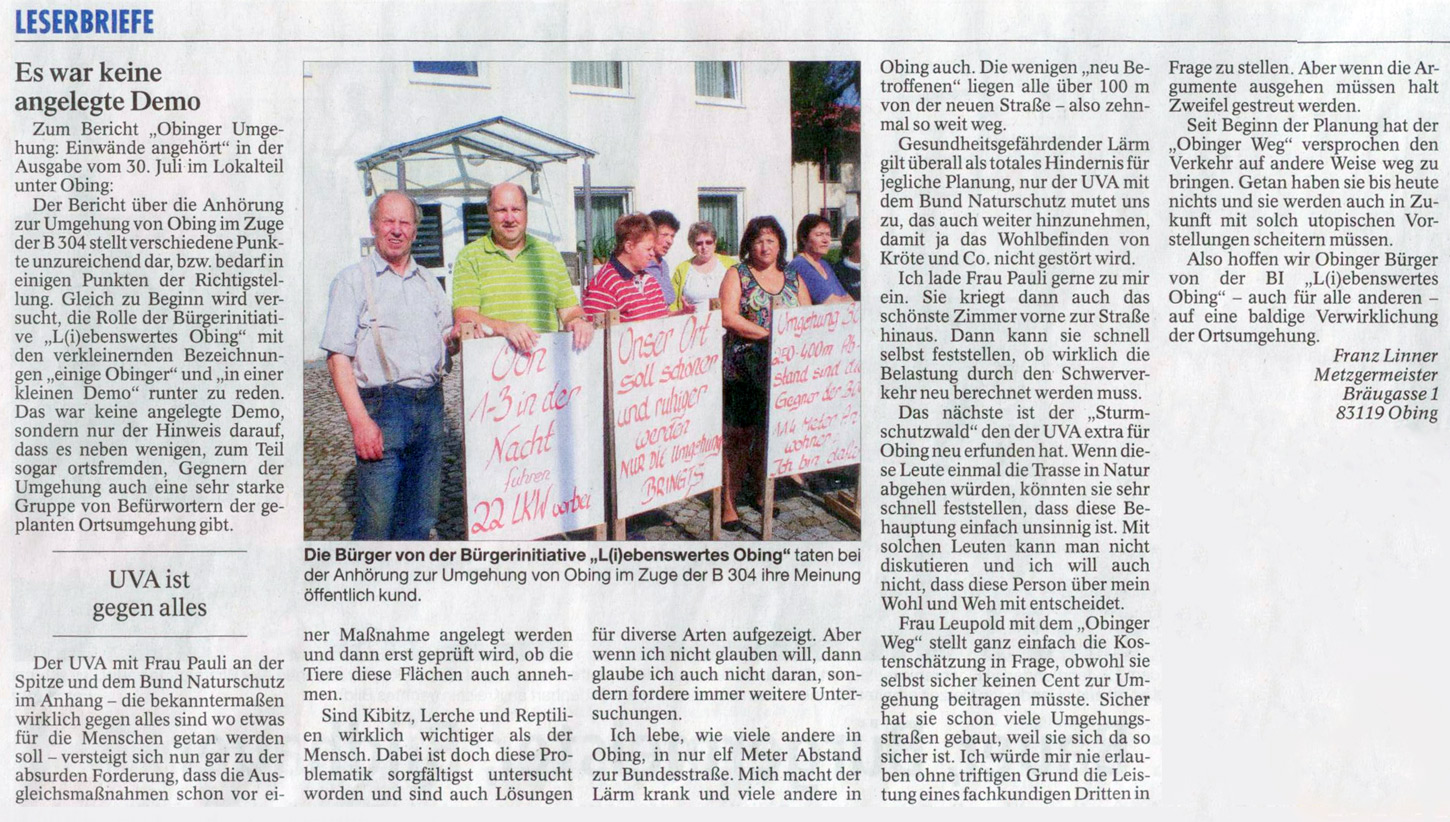 16.8.2011, Leserbrief an das Trostberger Tagblatt