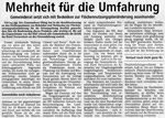 Artikel / Bericht über die Gemeinderatssitzung und was darin über die Ortsumgehung diskutiert wurde.