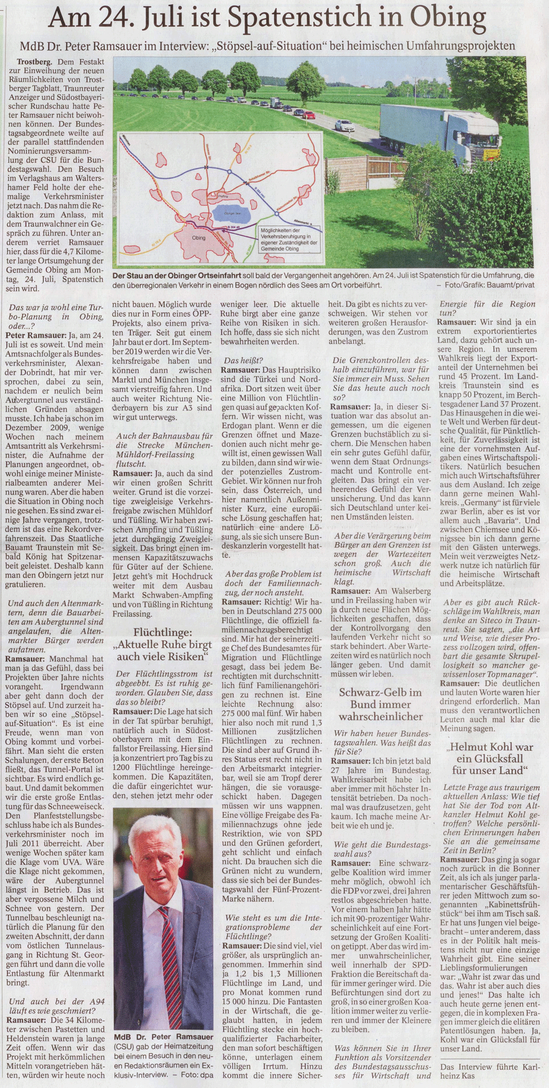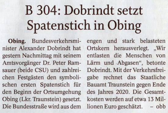 25.07.2017, Dobrindt setzt Spatenstich in Obing, Top-Neuigkeit auf Seite 1
